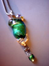 ダイクロガラス、銀線、石枠使用。