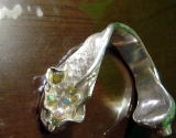 銀線を芯とし、両縁を「朝の訪れ」と「夜の渚」を現した作品。