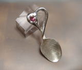 4・ベビースプーン 第一弾 画像をクリックすれば、見えます♪ イニシャルと誕生石を入れました。 アクセントと補強のため為に、銀粒を 柄と匙の間にあしらってあります。 画像をクリック〜♪